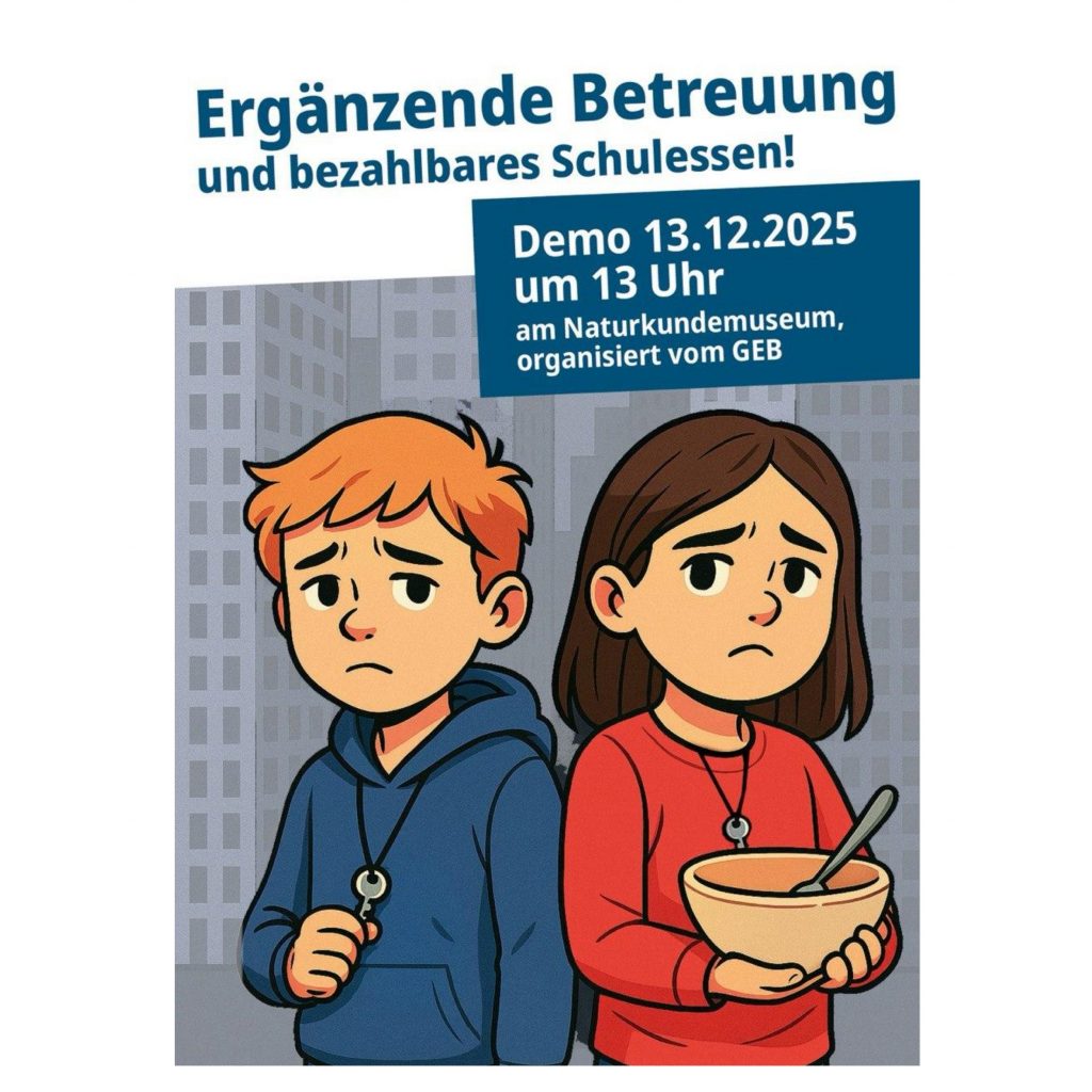 Erhöhung des Essensgeld und Wegfall der Ergänzenden Betreuung betrifft alle, egal welche Betreuungsform die richtige für dich ist! Steht zusammen, zeigt Gemeinsamkeit und kommt zu unserer Demo.